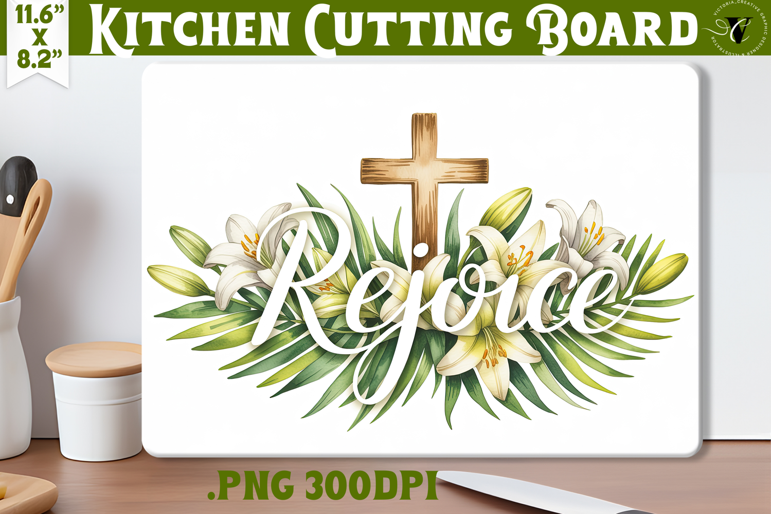 Christian Easter Kitchen Cutting Board | Rejoice design
