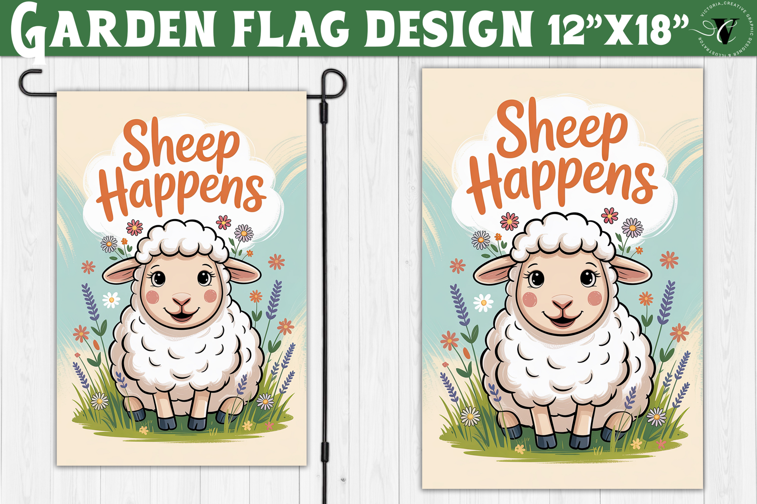 Funny Animals Rustic Decor Funny Porch Sign Garden Flag Sublimation Designs Farmhouse Garden Flag Sheep Happens Holiday Outdoor Decor Funny Farmhouse Flag Design Funny Farm Garden Flag Sublimation Funny Animals Garden Flag Design
