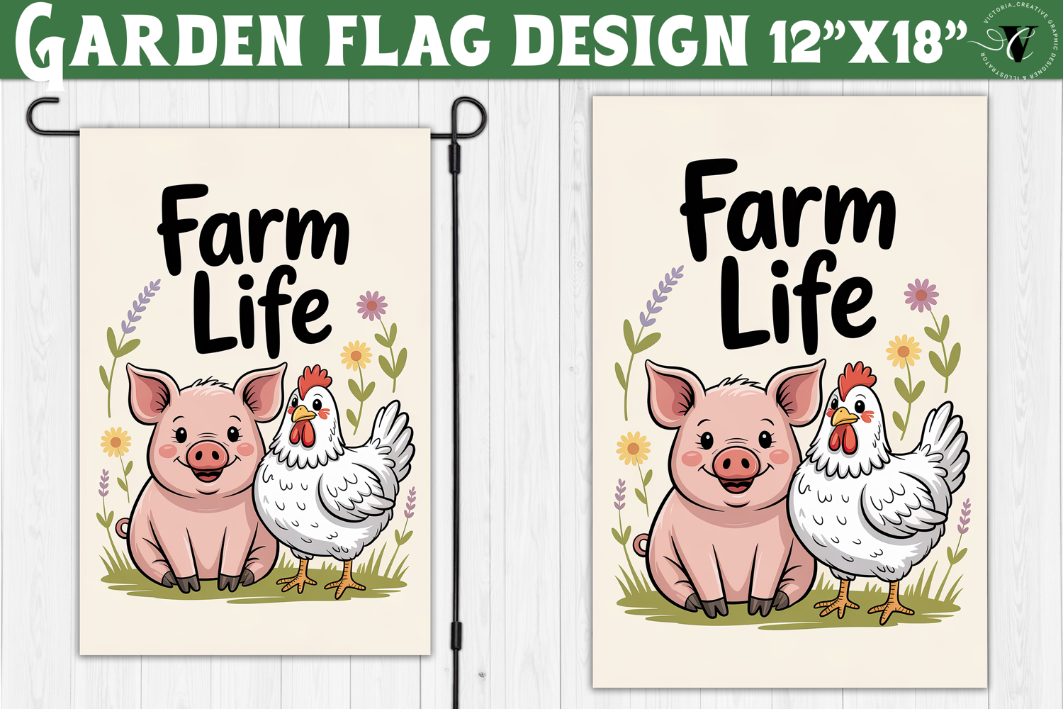 Perfectly formatted for 12x18 inch garden flags, this high-resolution PNG file is ready for sublimation, printing, and DIY outdoor décor projects. The bold lettering and cute cartoon farm illustrations make it eye-catching from a distance, ideal for welcoming guests with rustic country charm.