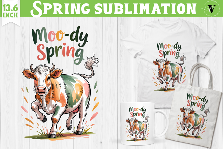 Welcome Spring sublimation | Spring funny cow sublimation example image 1