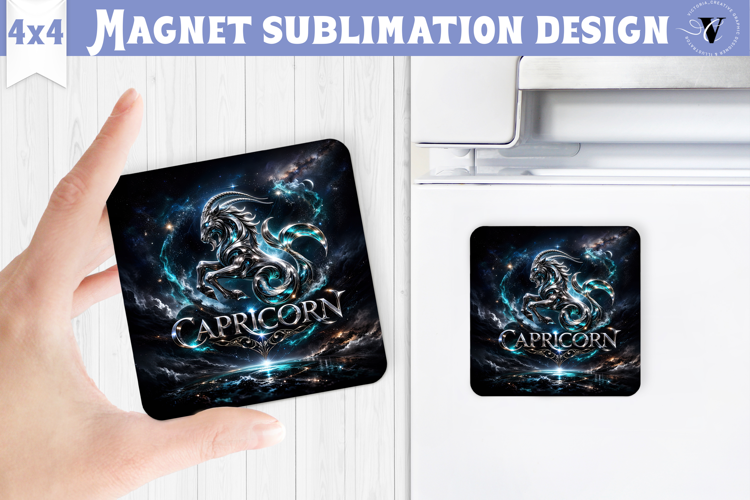 The glossy chrome Capricorn symbol combined with glowing nebula lighting and celestial accents gives your finished product a premium, eye-catching look — ideal for zodiac lovers, astrology gift shops, and handmade sublimation businesses. Whether you're creating custom fridge magnets for birthdays, stocking fillers, or star sign gift sets, this design will print beautifully on magnet blanks, MDF boards, aluminum panels, or other sublimation-ready surfaces.
