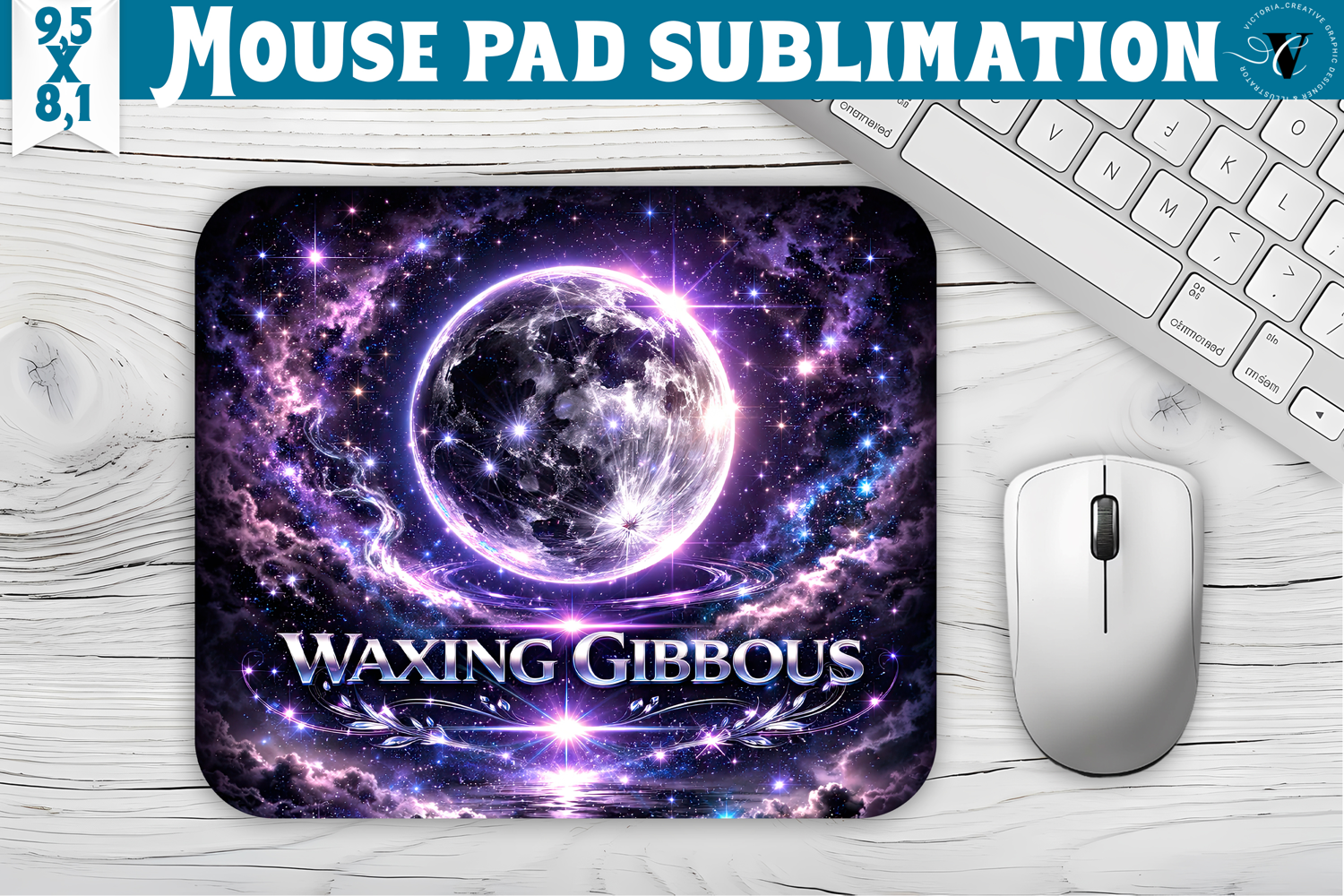 Mouse pad design with Moon Phase Sublimation Design