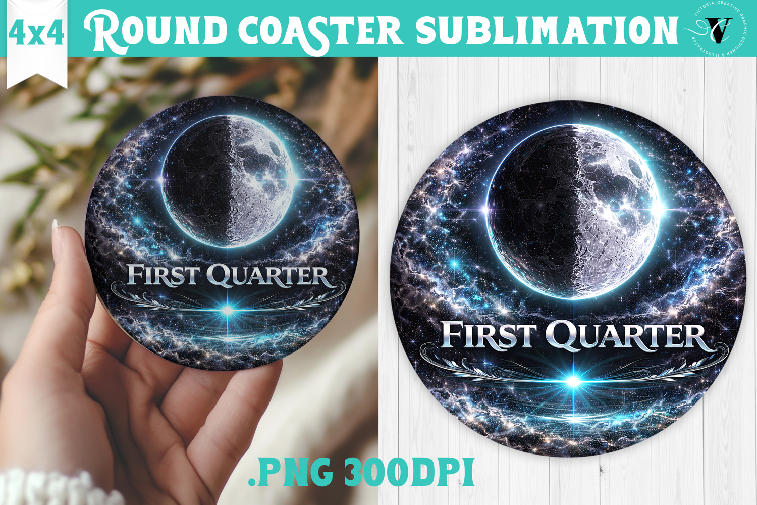 Coaster Moon Phase Astrology Gift Round Coaster Celestial Decor First Quarter Moon Round Coasters Sublimation Moon Lover Gift Lunar Coaster Sublimation Design Spiritual Round Coaster Sublimation