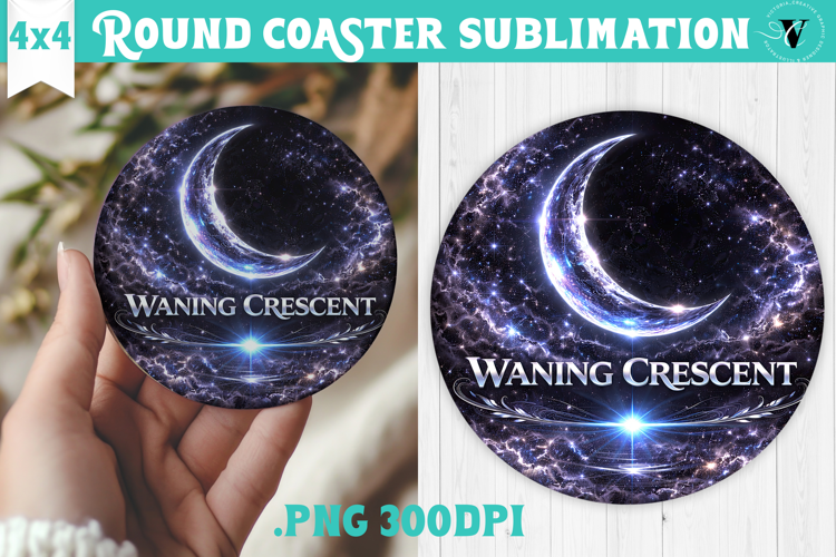 Coaster Moon Phase Astrology Gift Round Coaster Waning Crescent Moon Celestial Decor Round Coasters Sublimation Moon Lover Gift Lunar Coaster Sublimation Design Spiritual Round Coaster Sublimation