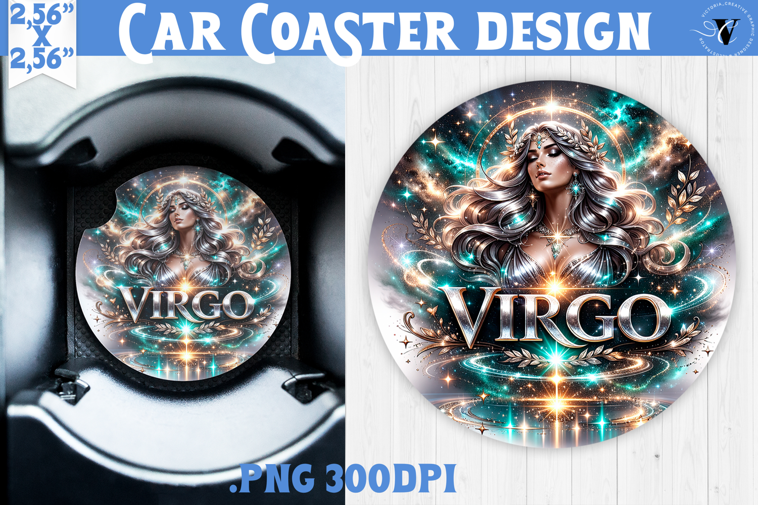 Virgo Car coaster | Galactic Metallic Zodiac