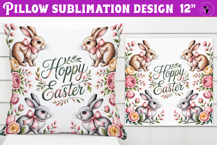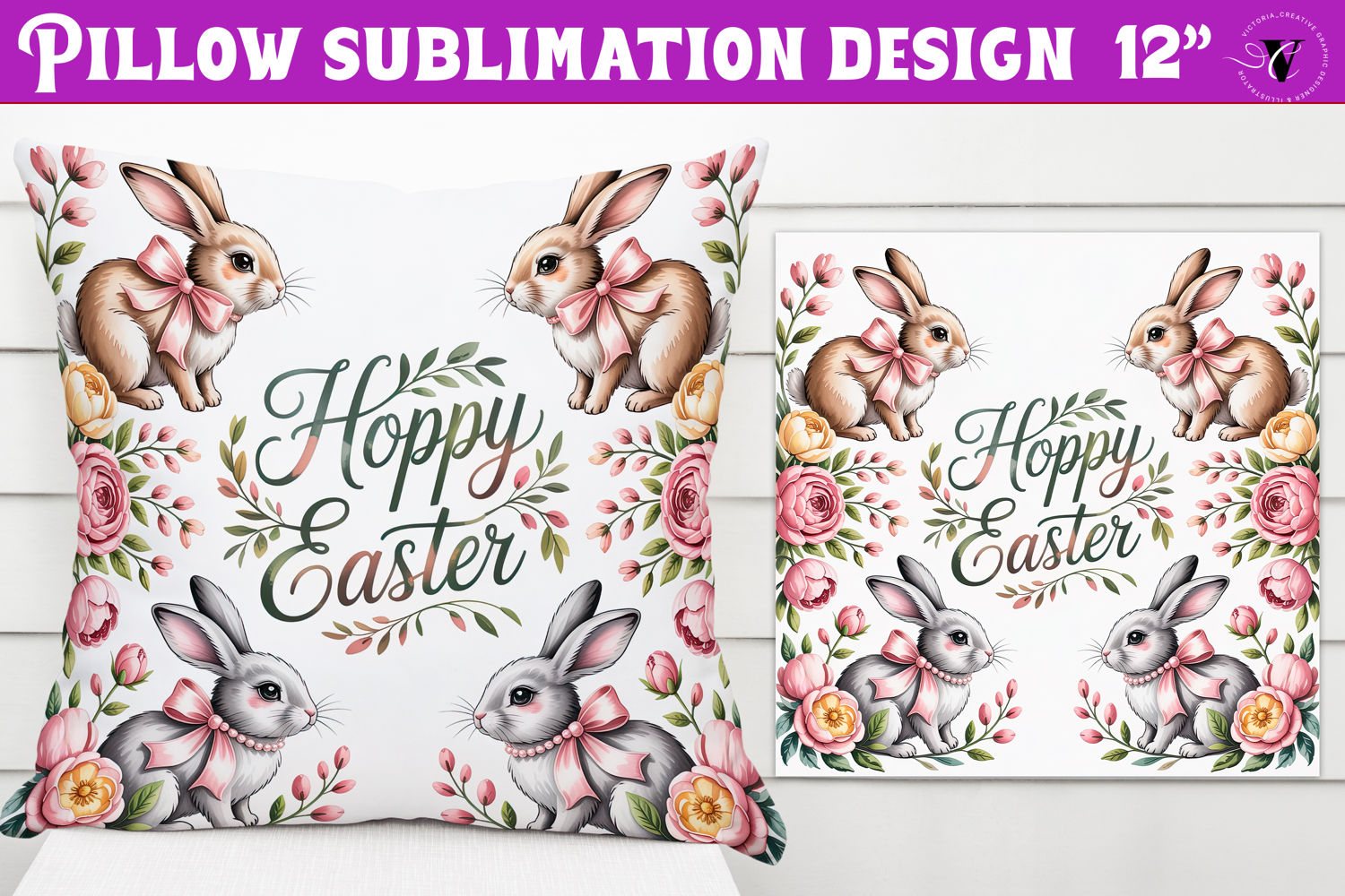 Christian Easter pillow sublimation | Hoppy Easter design example image 1