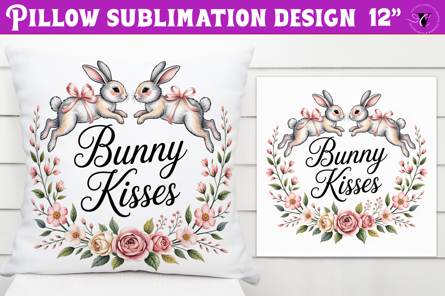 Christian Easter pillow sublimation | Bunny Kisses design