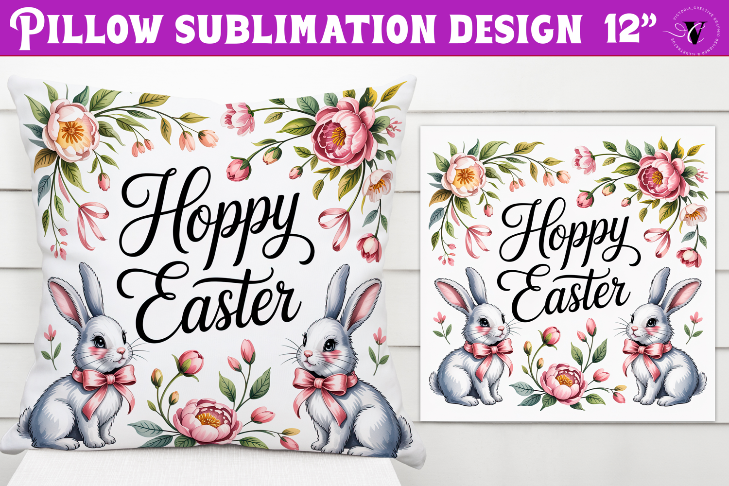 Christian Easter pillow sublimation | Hoppy Easter design example image 1