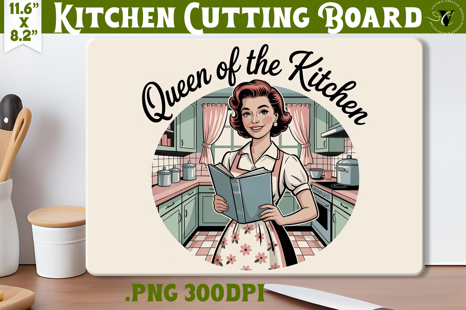Mothers Day Queen Of The Kitchen Cutting Board Sublimation Kitchen Cutting Board Mothers Day Cutting Board Sublimation Vintage Housewife Design Mom Kitchen Decor Retro Mom Cutting Board Funny Mom Kitchen Funny Mom Gift Kitchen