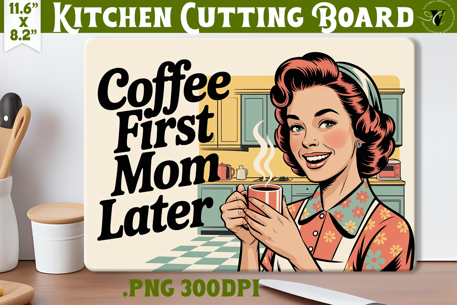 Mothers Day Cutting Board Sublimation Kitchen Cutting Board Mothers Day Cutting Board Sublimation Vintage Housewife Design Mom Kitchen Decor Coffee First Mom Later Retro Mom Cutting Board Funny Mom Kitchen Funny Mom Gift Kitchen