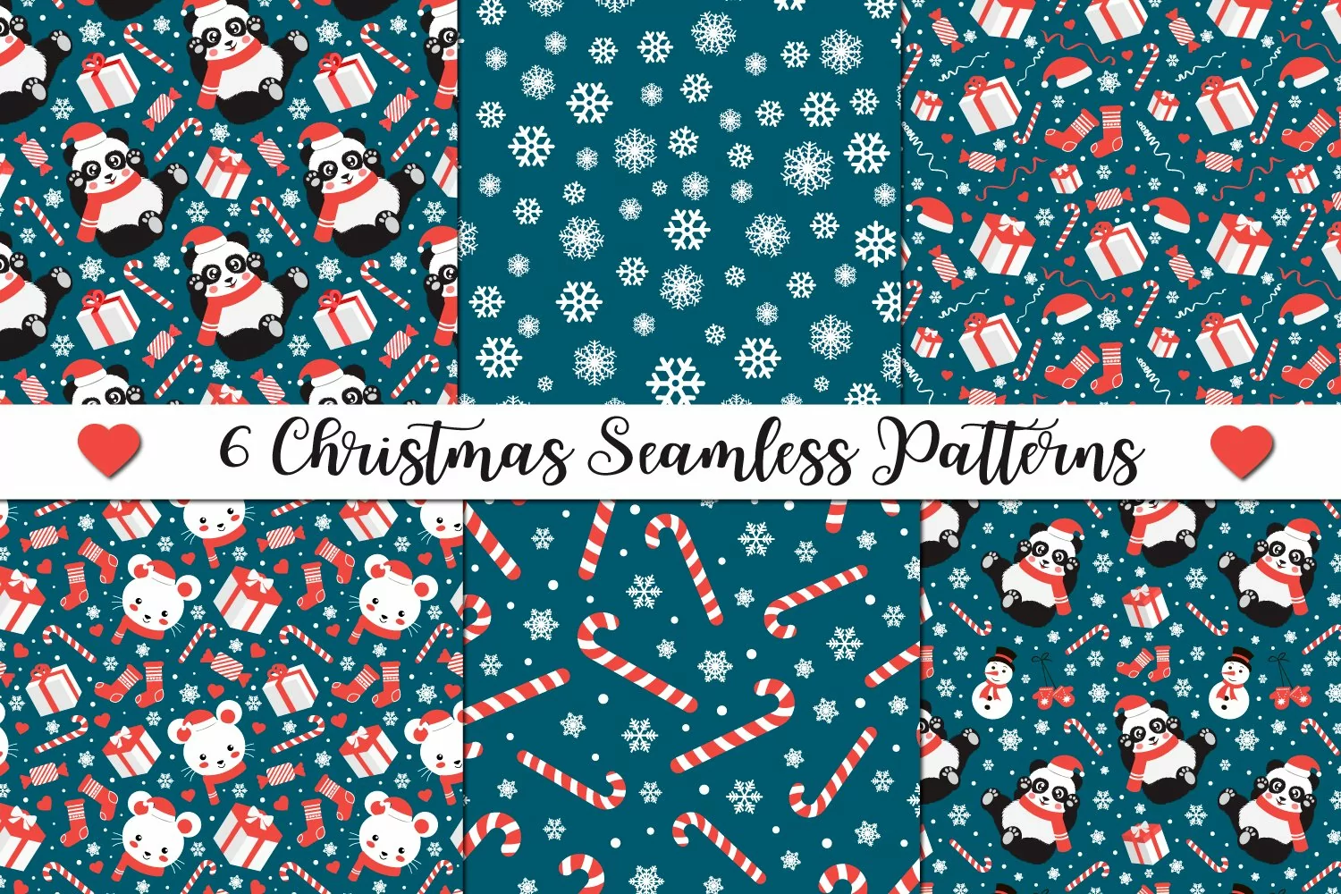 Cute christmas seamless patterns set example image 1