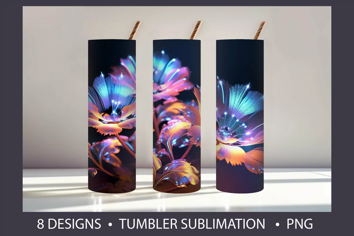Dark 3d Sublimation Flower Sublimation Skinny Tumbler Bundle Magic Flowers Flower Wrap 3d Tumbler Wrap Fantastic Flowers 3d Tumbler Wrap Sublimation Glowing 3d Flowers