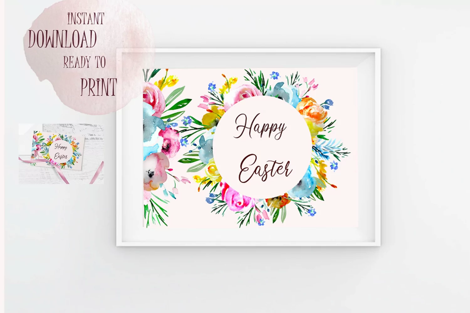 Happy Easter Printable Floral Watercolor example image 1