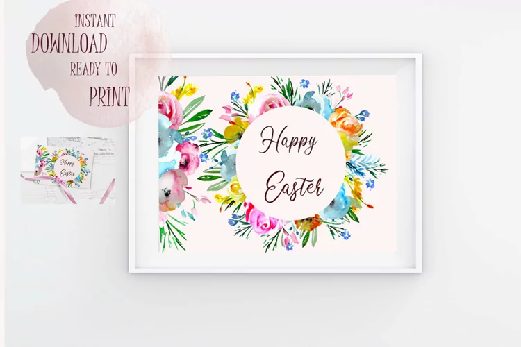 Watercolor Print Diy Printable Floral Watercolor Wall Art Happy Easter Easter Decor Printable Floral Easter Cards