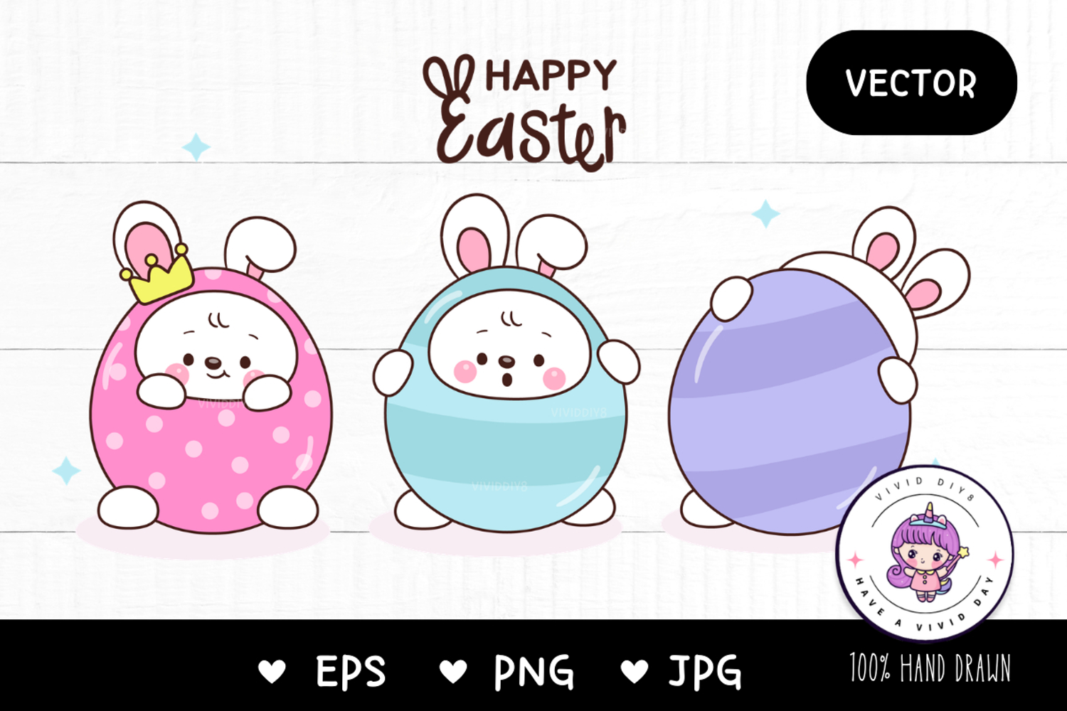 Cute bunny clipart and egg kawaii animals easter sublimation example image 1