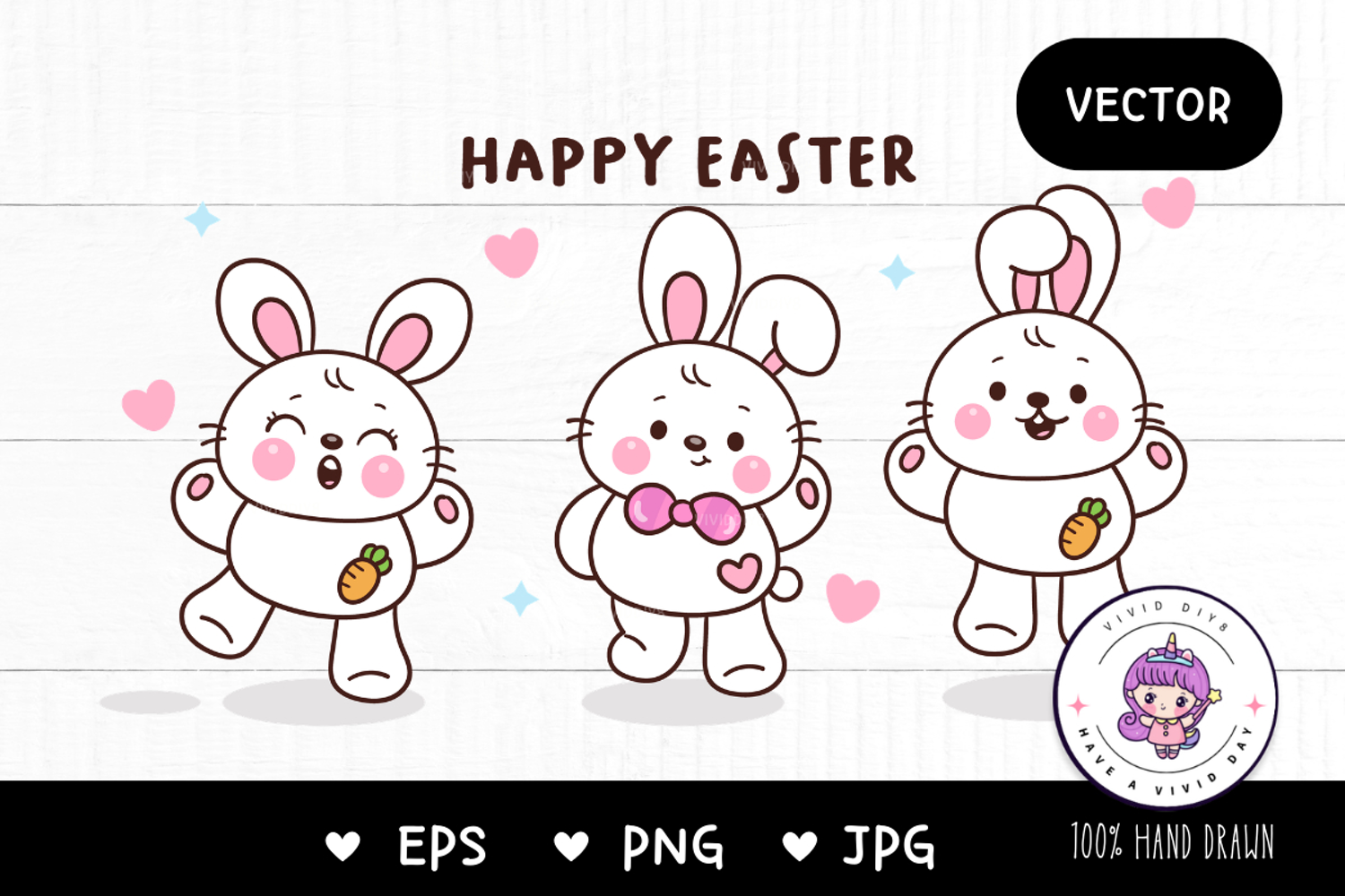Cute easter bunny clipart rabbit kawaii animals vector example image 1