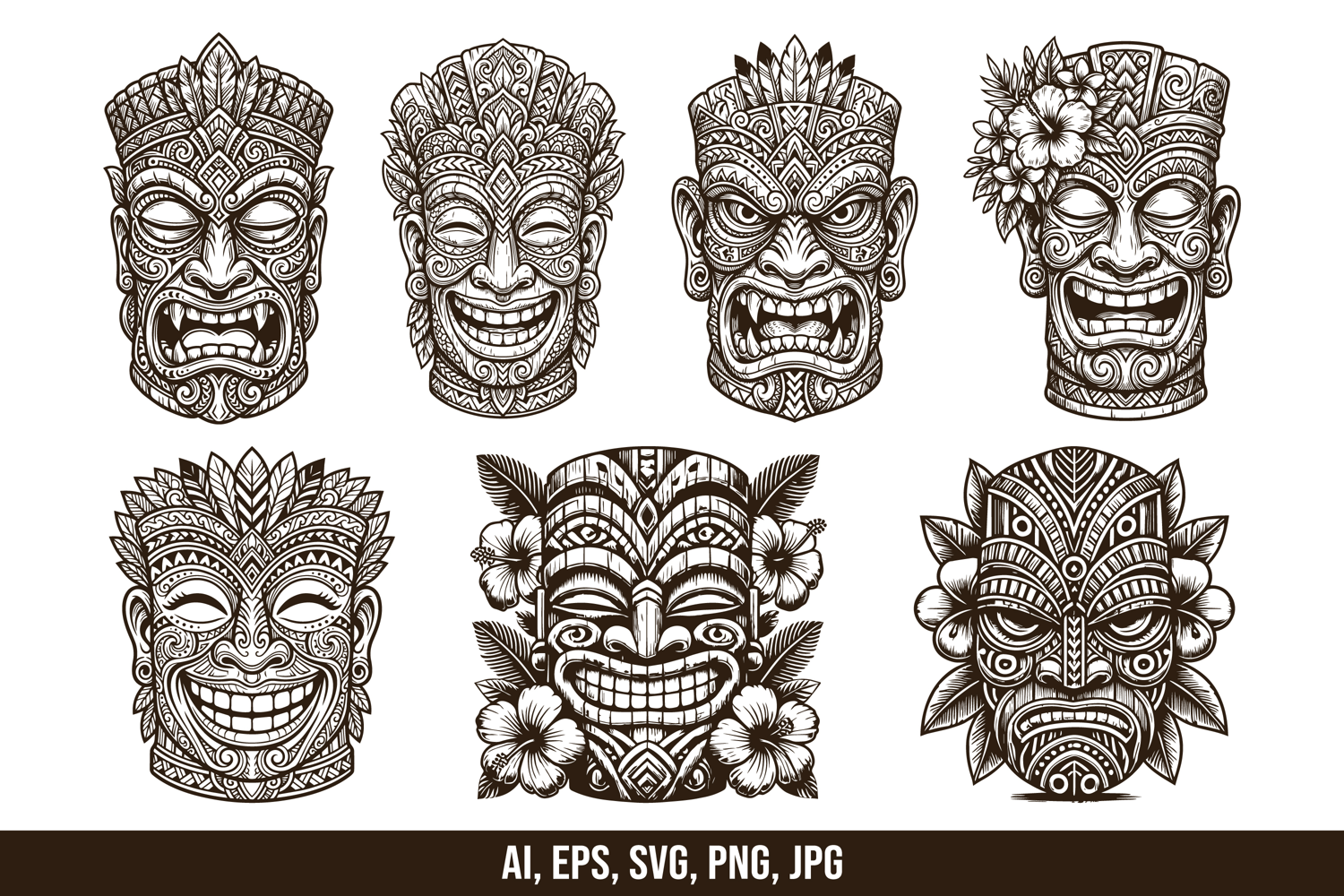 Tiki Svg Bundle Polynesian Vector Pack Hawaiian Cut Files Tiki Line Art Collection Tropical Mask Bundle Tiki Merch Designs Engraved Tiki Clipart Tribal Mask Bundle Aloha Vector Set Printable Tiki Graphics
