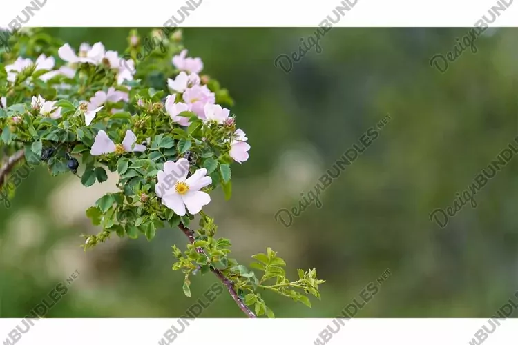 Natural background with flowering rosehip branches example image 1