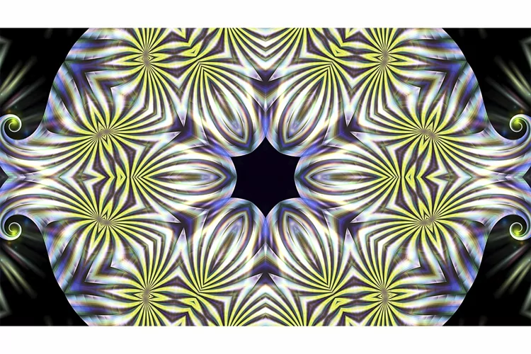 Abstract textured luminous multicolored Kaleidoscope mandala. design, art