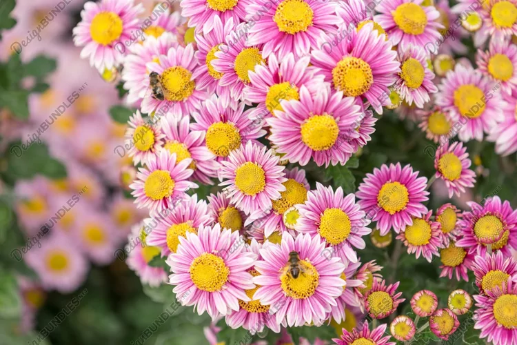 Similar Design Products to Pink chrysanthemum flowers on a green Bush