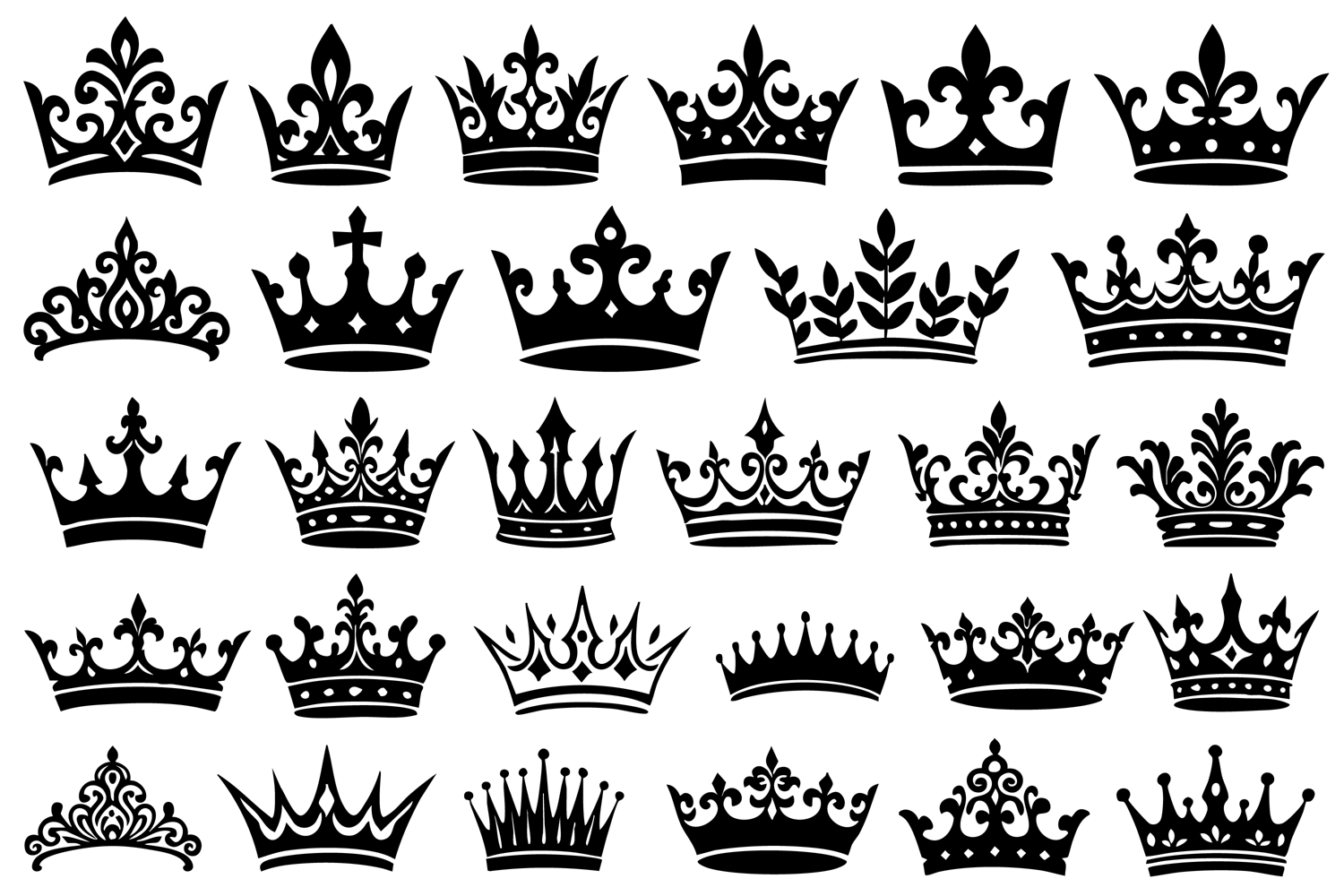 Royal Crown Silhouette SVG Bundle / Elegant King and Queen Crown Clipart Set / Black Crown SVG for Cricut and Laser Cutting / Vintage Royal Crown Vector Collection / Crown PNG for Sublimation