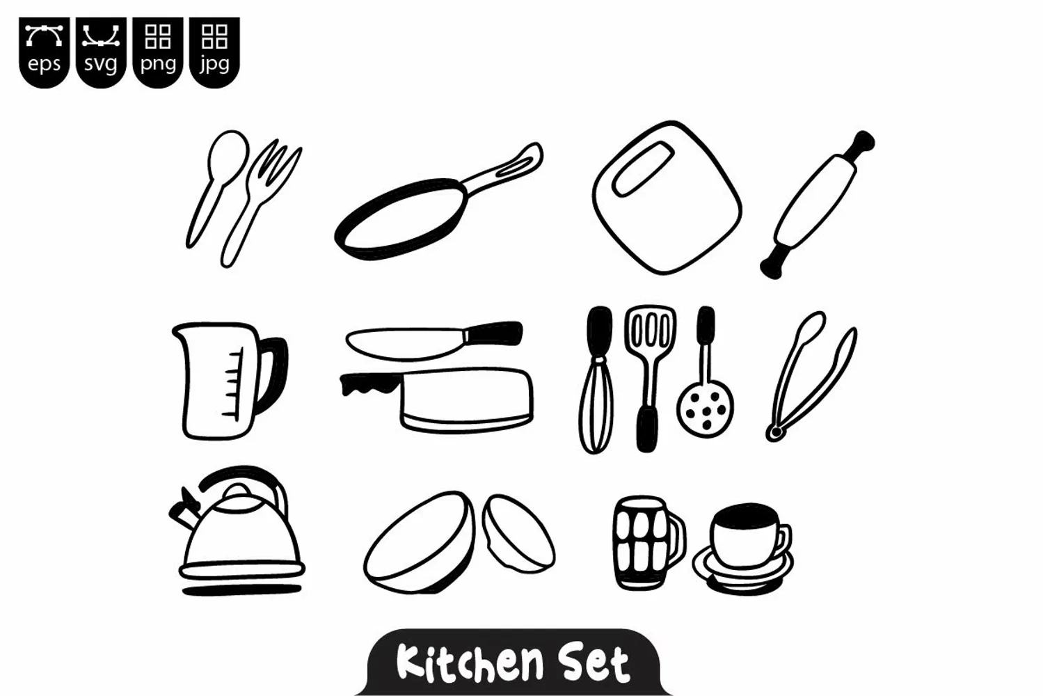 Similar Design Products to Set of kitchen utensil doodle