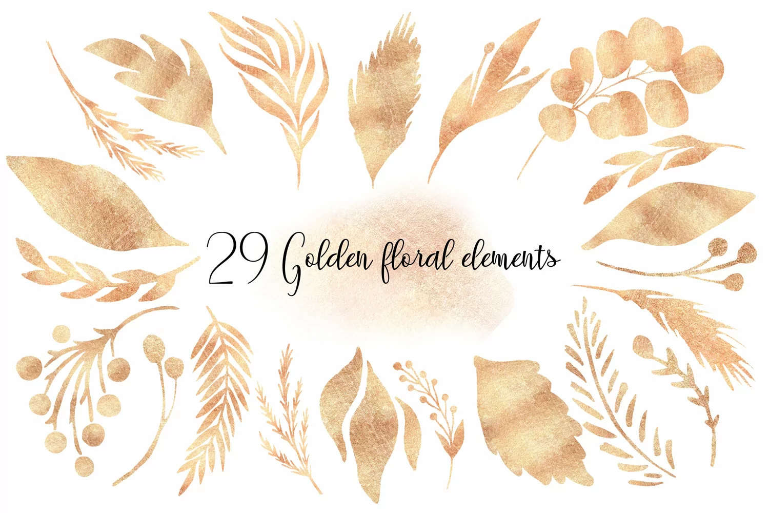 Botanical Clipart Wedding Floral Gold Floral Floral Png Gold Branches Gold Floral Elements Golden Floral Clipart Golden Branches Clipart Branches Png Golden Floral Elements