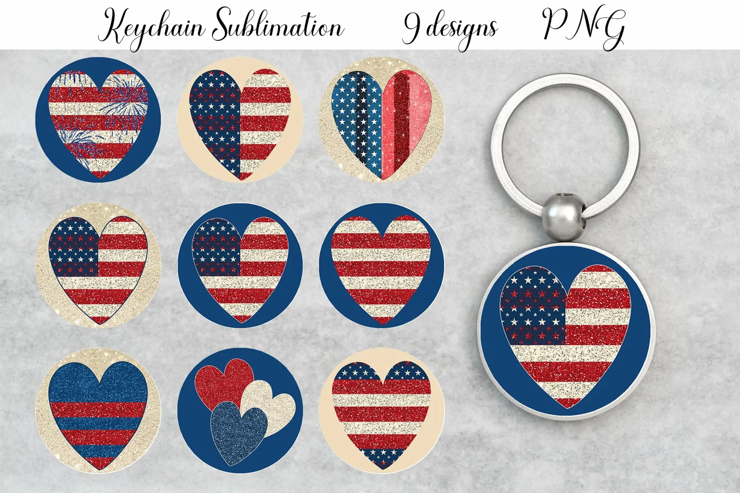 Patriotic Keychain Sublimation | 4th of July Circle Keyring