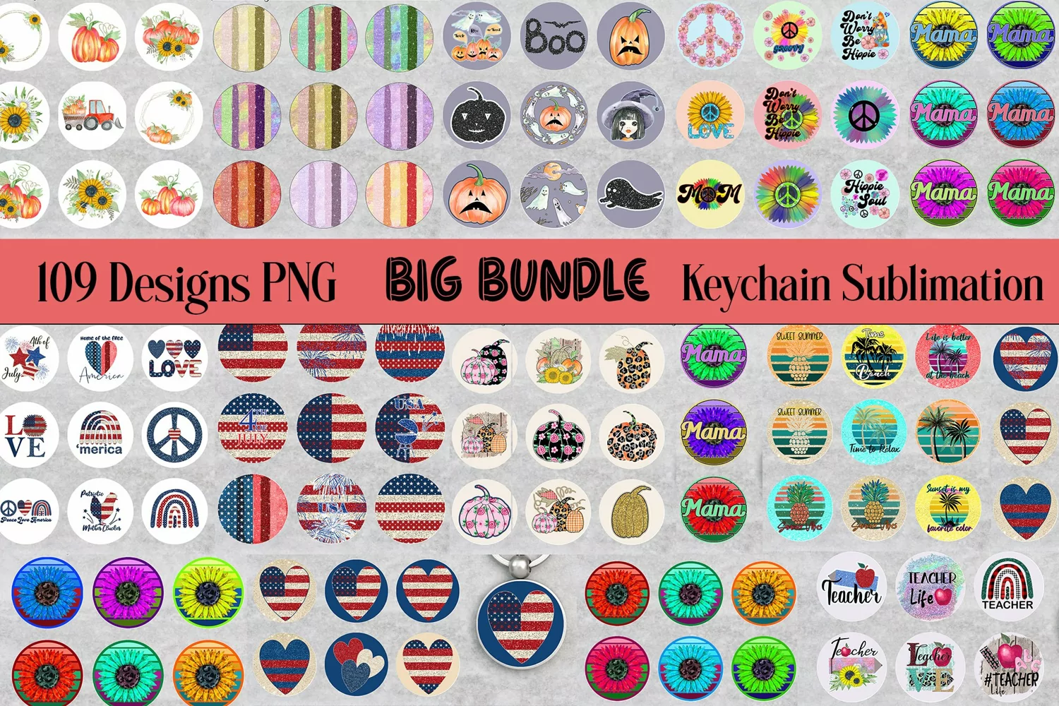 Sublimation Keychain Bundles | Mega Keychain Bundle. A set of Sublimation designs for printing on round key chains.