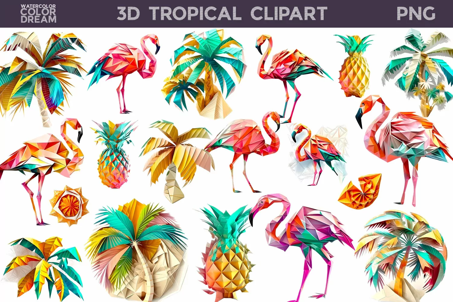 Similar Design Products to 3D Flamingo Sublimation | 3D Tropical Clipart
