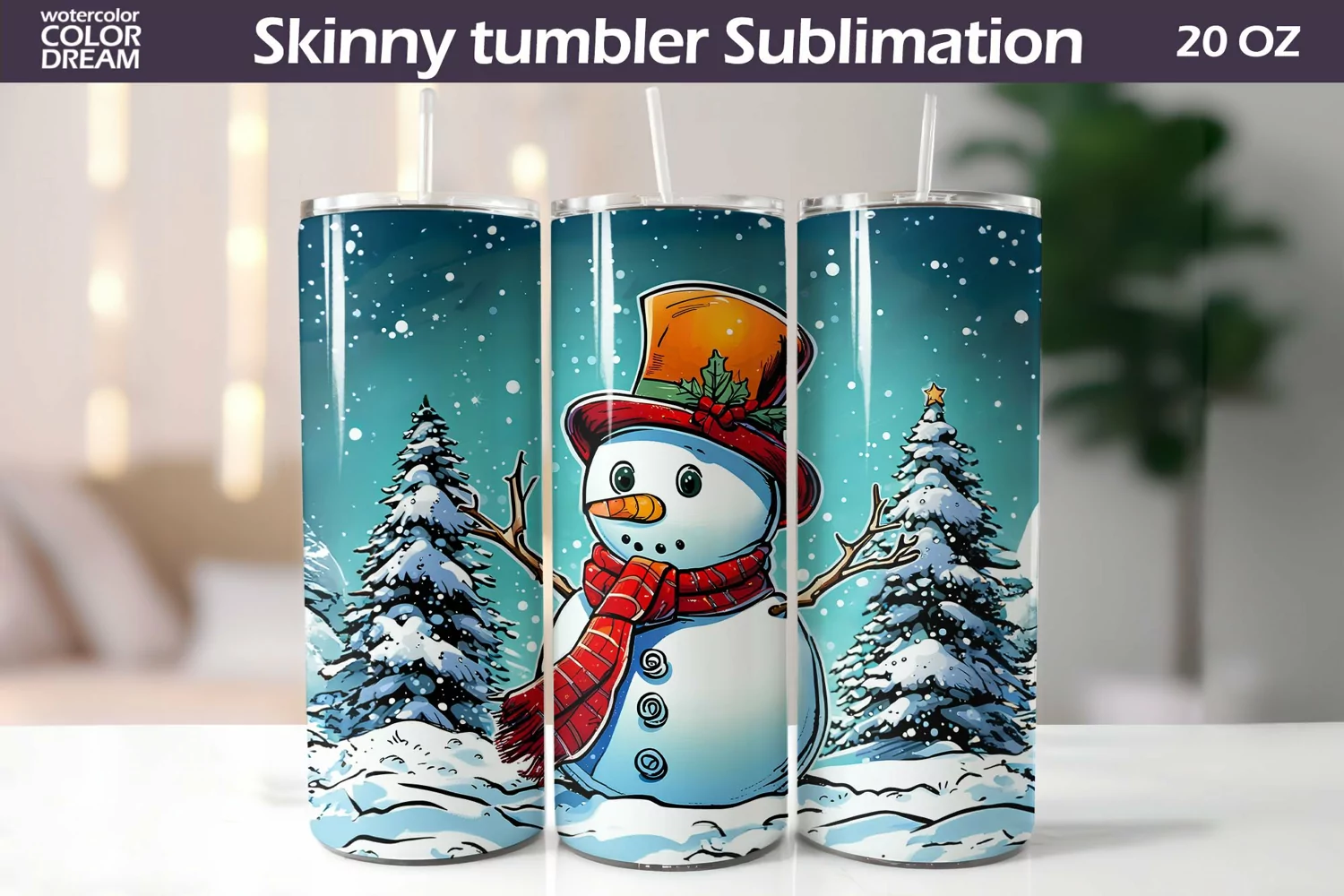Snowman Skinny Tumbler Sublimation | Snowman Tumbler Wrap example image 1