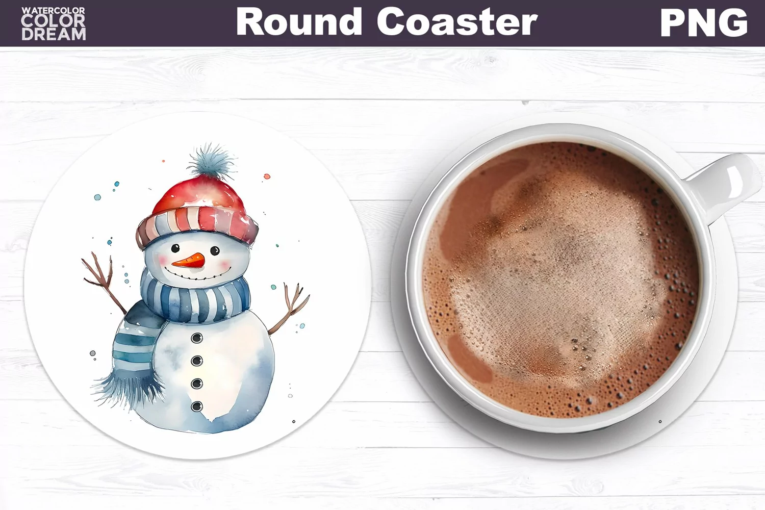 Christmas Coaster Round | Winter Snowman Coaster Design example image 1