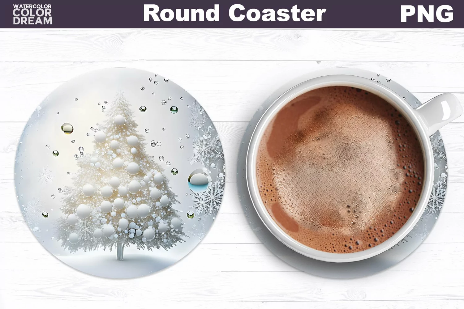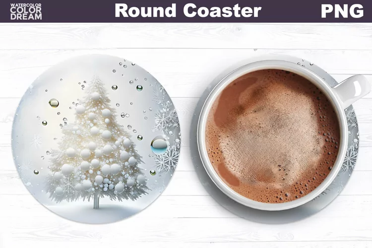 Similar Design Products to White Christmas Tree Round Coaster |Coaster 3D Christmas PNG