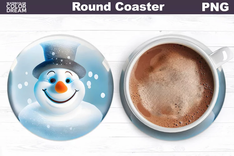 Snowman Round Coaster | 3D Christmas Coaster Sublimation example image 1