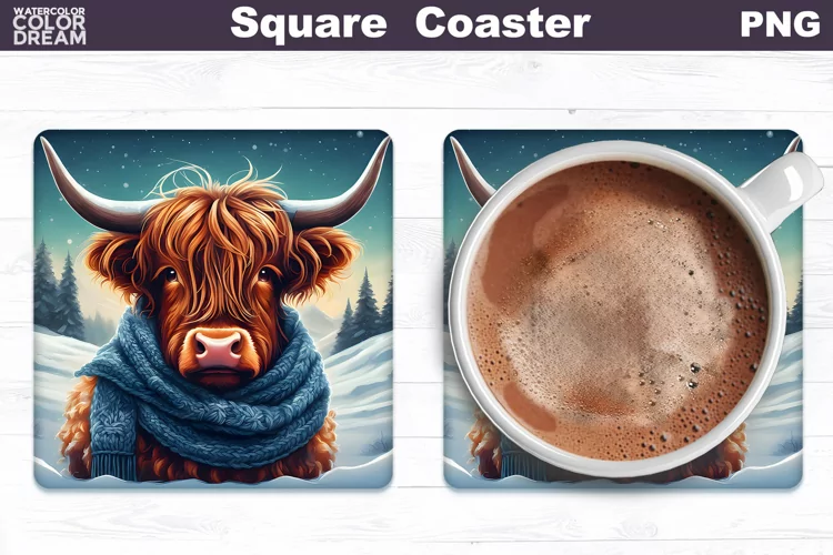 Square Coaster Square Coasters Sublimation Square Coaster Sublimation Design Highland Cow Coaster Cow Square Coaster Christmas Cow Square Coaster Winter Cow Square Coaster Christmas Highland Cow Coaster Winter Highland Cow Coaster Highland Cow Coaster Sublimation