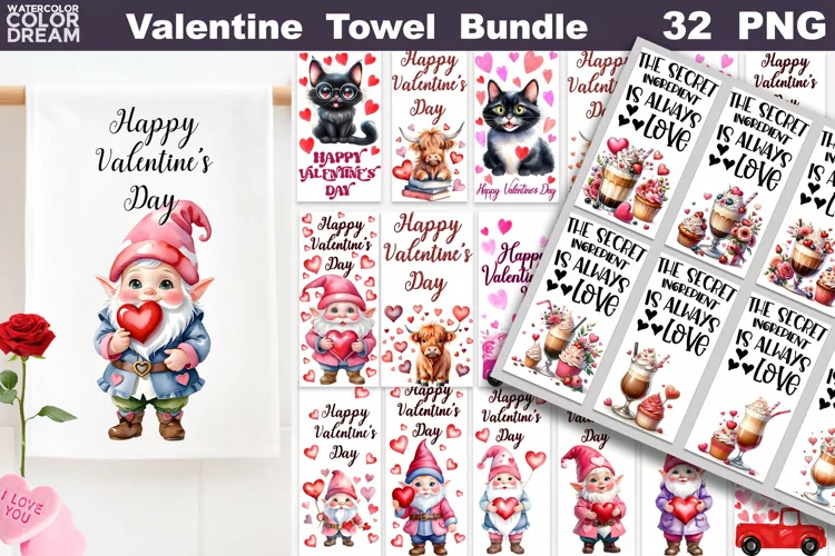 Valentine Kitchen Towel Bundle | Valentines Day Towel Bundle example image 1
