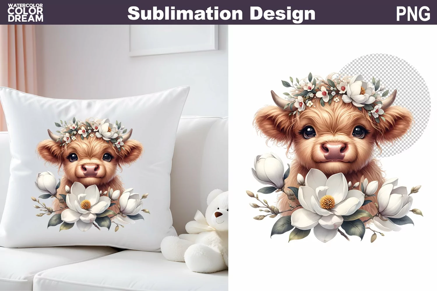 Cute Highland Cow Magnolia Sublimation | Baby Cow Clipart example image 1