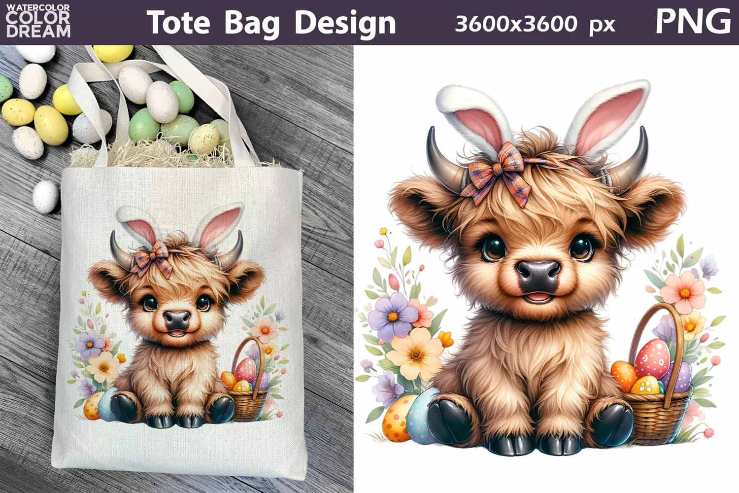 Highland Cow Easter Sublimation | Easter Hunter Tote Bag example image 1