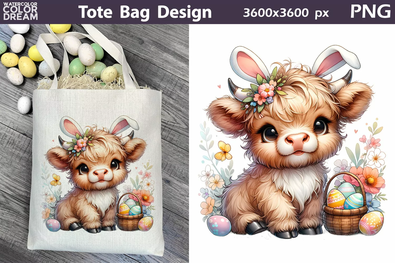 Highland Cow Easter Sublimation | Easter Hunter Tote Bag example image 1