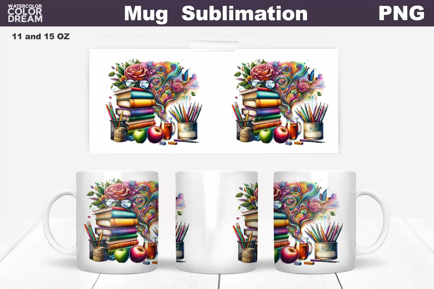-2 PNG files (300 dpi) 15 oz mug design is sized at 9'' x 4'' and 11 oz mug design is sizes at 8,5" x 3,5"
