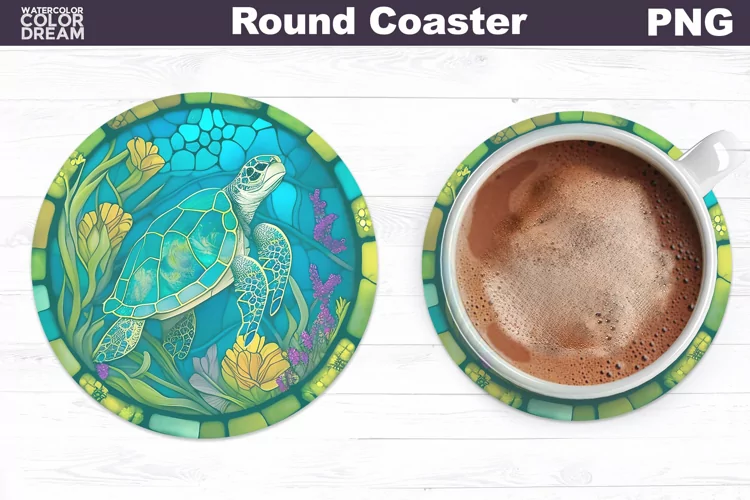 Similar Design Products to Turtle Stained Glass Coaster | Turtle Round Coaster