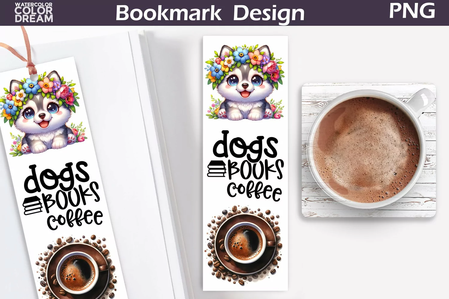 Similar Design Products to Dogs Books Coffee Bookmark | Husky Bookmark
