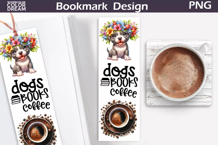 Dogs Books Coffee Bookmark | Pit Bull Bookmark example image 1