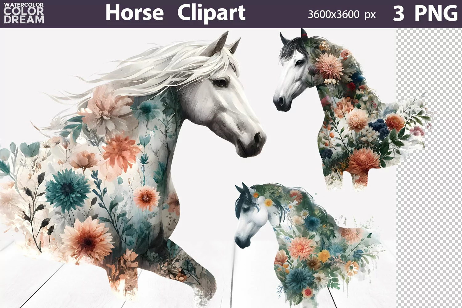 Similar Design Products to Horse Flowers Clipart | Horse Double Exposure Sublimation