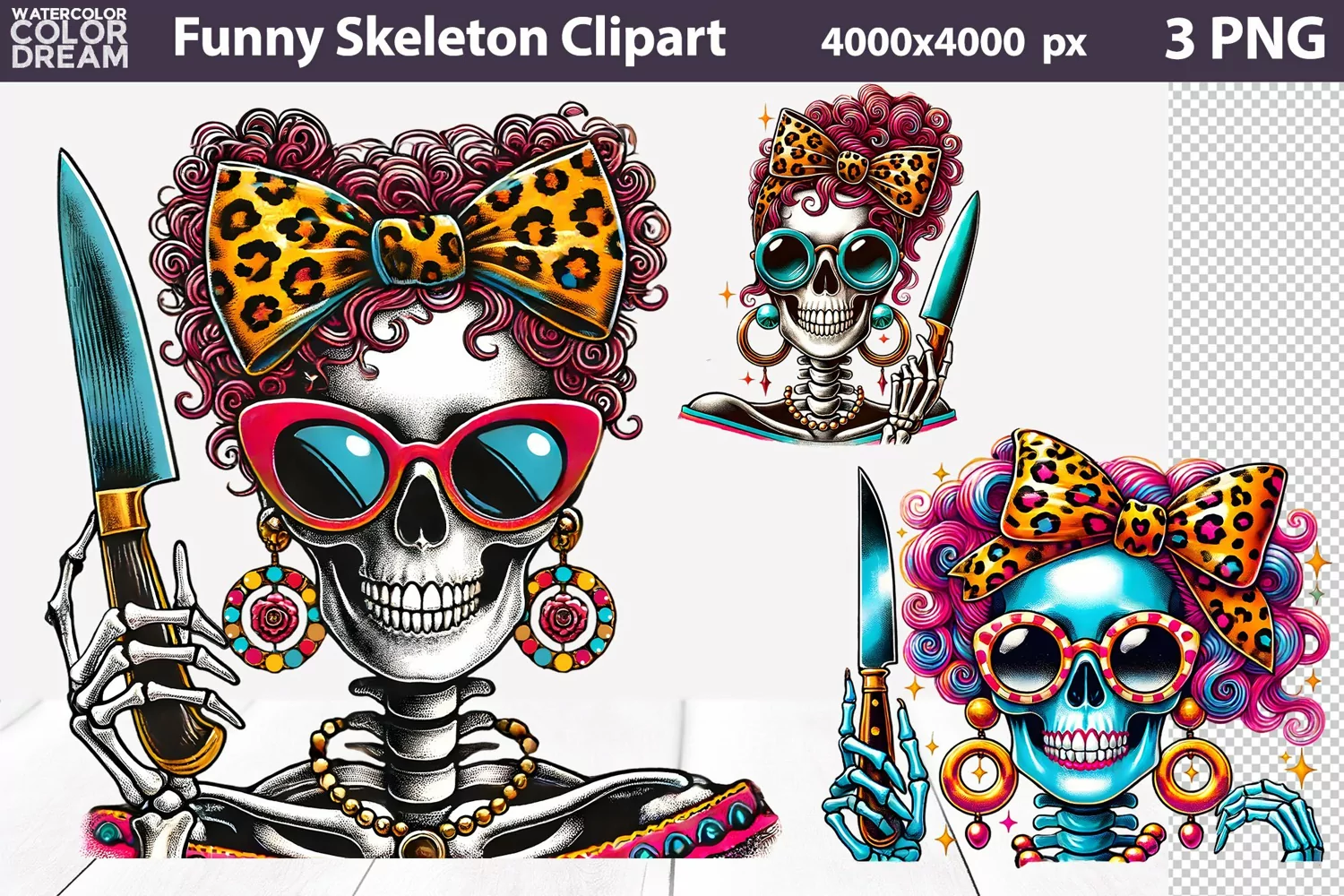 Funny Skeleton Clipart | Skeleton Sublimation example image 1