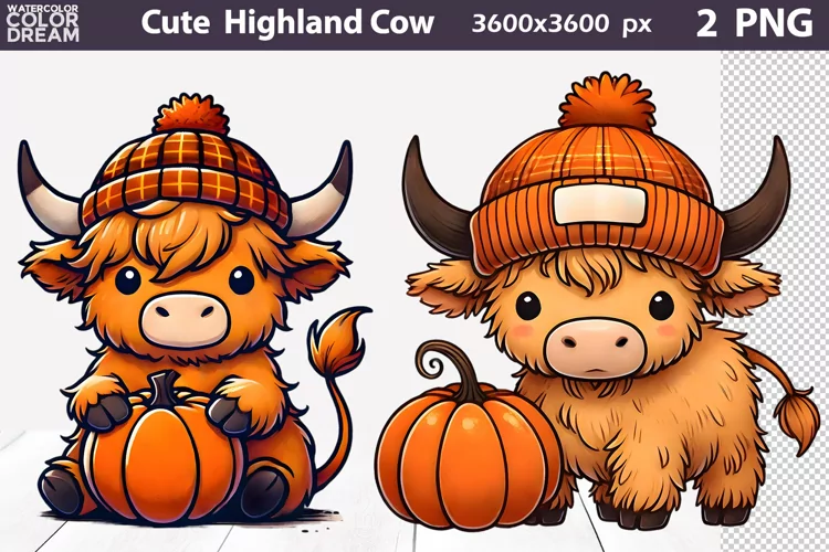 Similar Design Products to Fall Highland Cow Clipart | Cow Pumpkin Sublimation