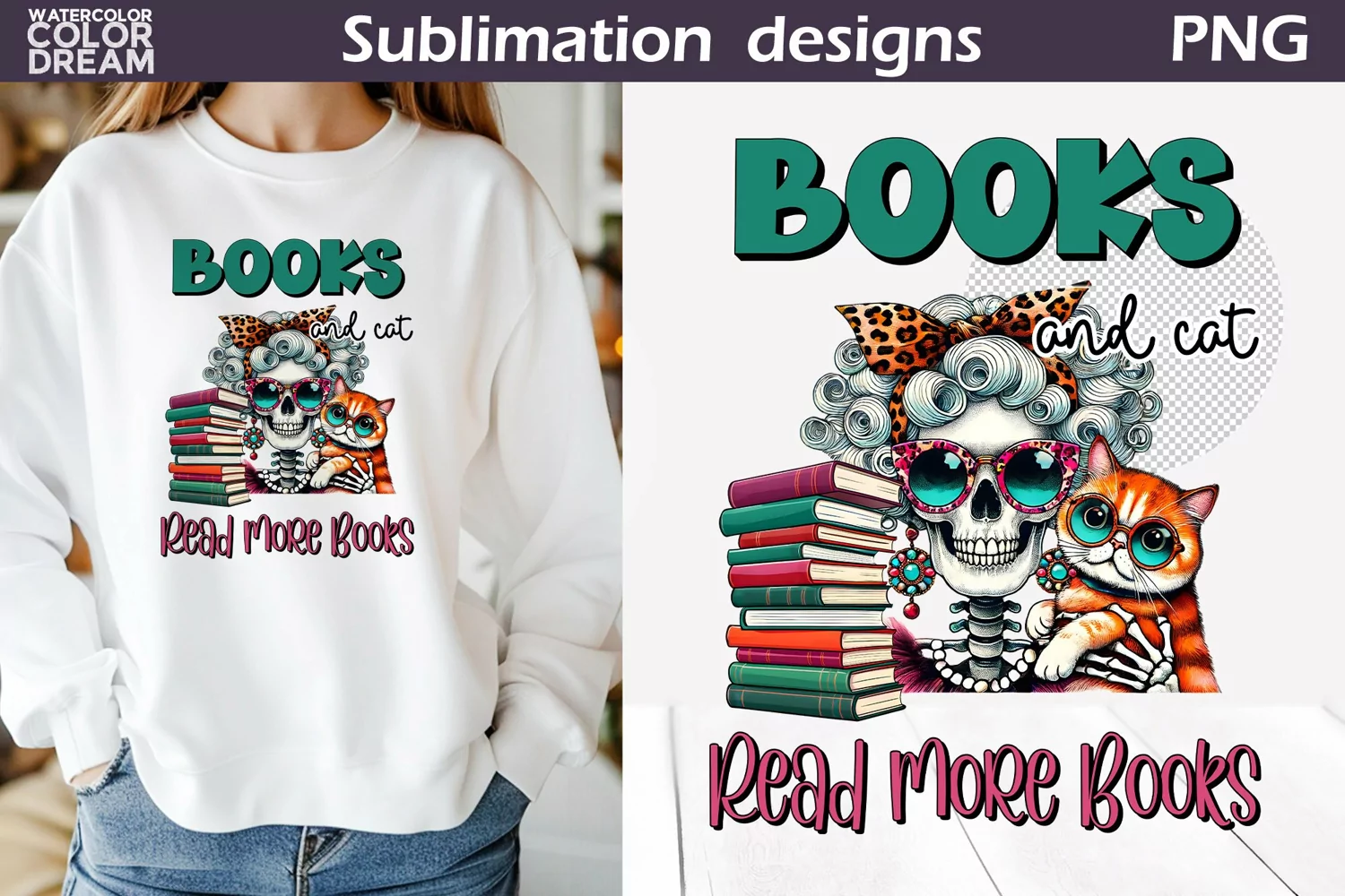 Funny Book Sublimation | Books And Cat | Read More Books