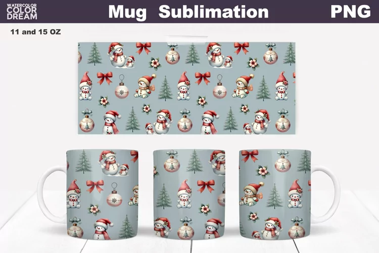 Christmas Snowman Wrap | Christmas Mug Sublimation example image 1