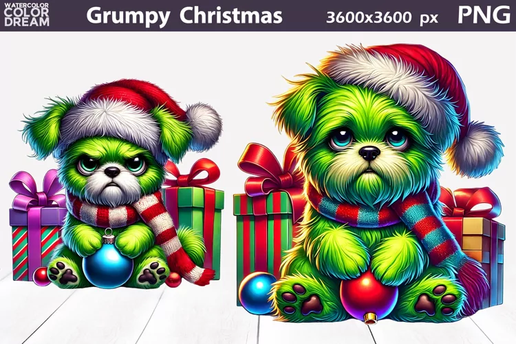 Grumpy Green Dog Christmas Clipart | Puppy Sublimation