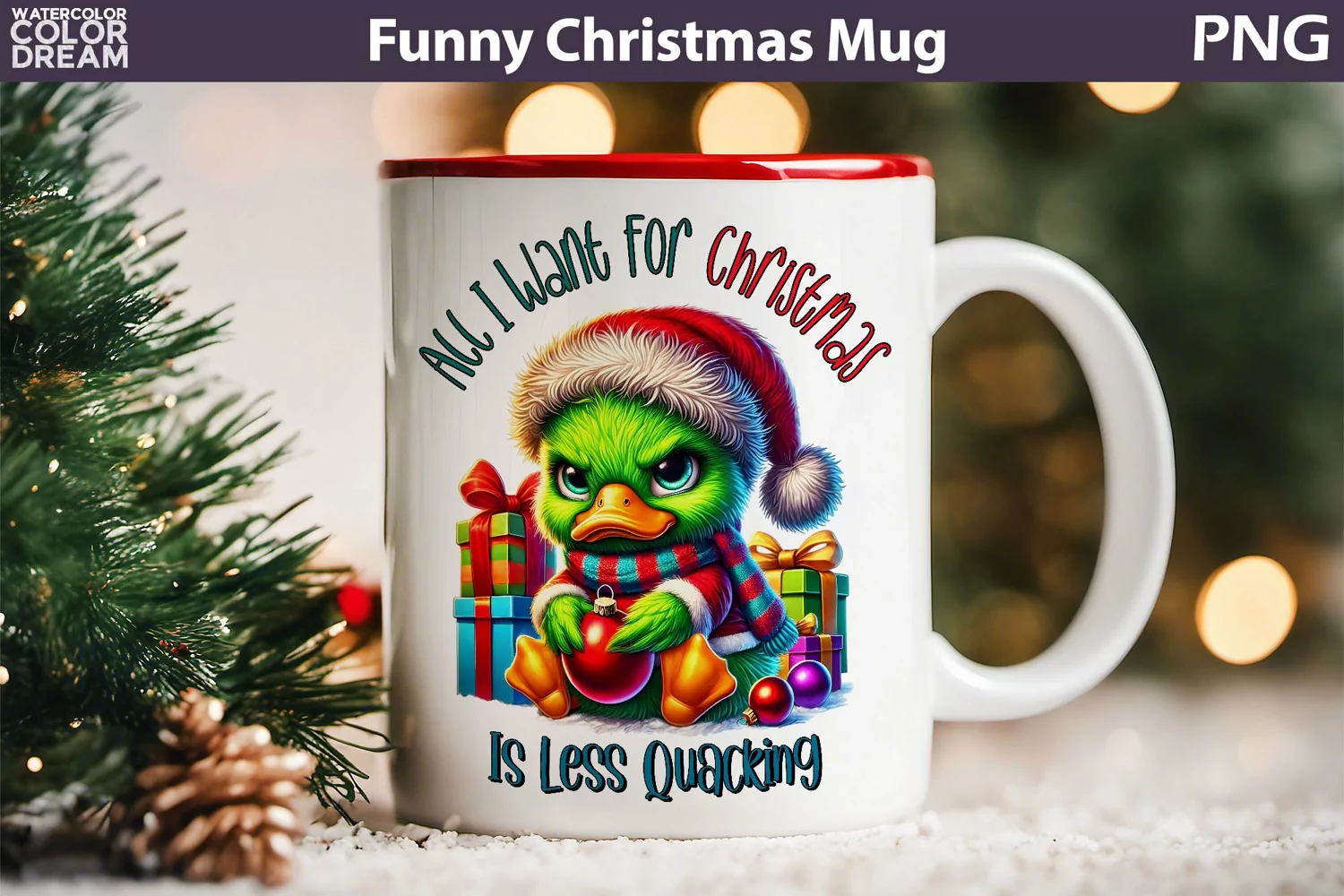 Grumpy Christmas Mug | Sarcastic Coffee Mug | All I Want For Christmas Is Less Quacking